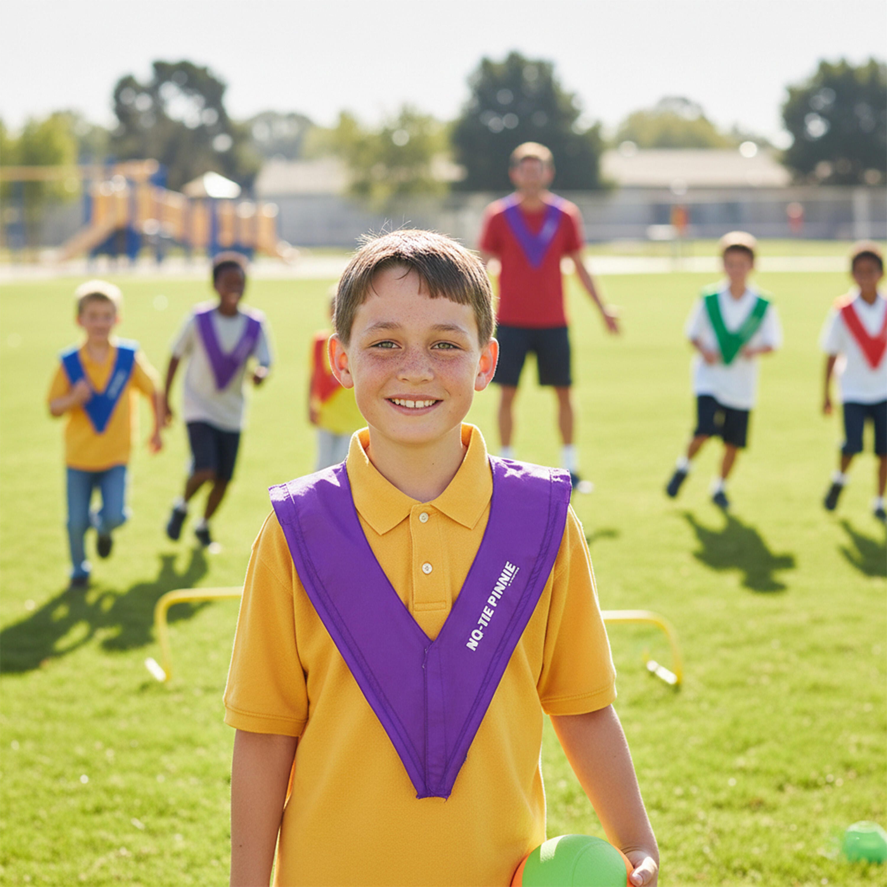This No-Tie Pinnie helps students get in the game without lifting anything over their heads. Perfect for inclusive and adaptive PE programs.