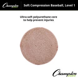 Give young players a safe introduction to baseball with the Level 1 Champion Sports Soft Compression Baseball. Features an ultra-soft polyurethane core to help prevent injuries and a tough Syntex leather cover that can stand up to everyday wear and tear. The level 1 baseball comes in an official size of 9 inches and weight 9 oz, helping players aged 5 to 7 to get accustomed to pitching, hitting and catching with the proper form.