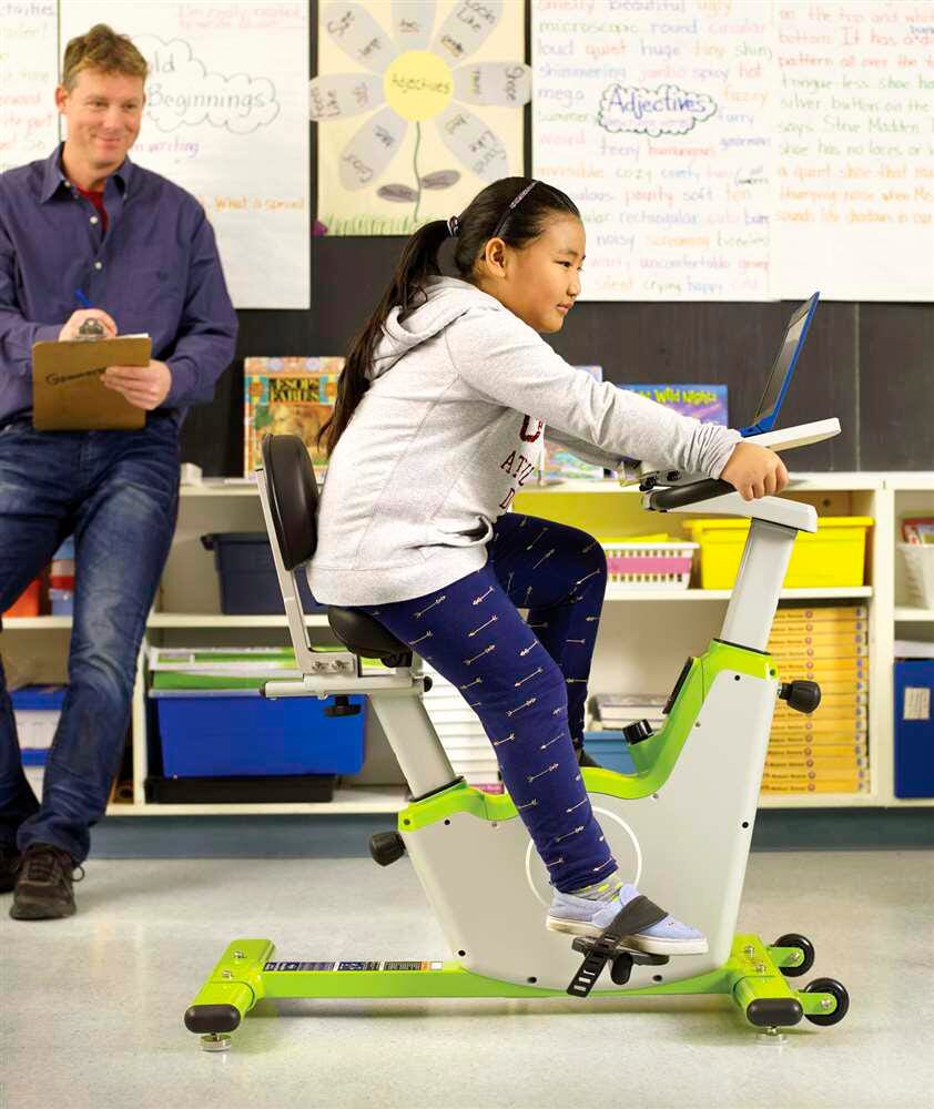 This Copernicus Classroom Cruiser is an extremely durable kid's desk exercise bike designed for fit, comfort, and safety for students in grades Pre K - 2.
