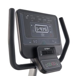 The CR800 Semi-Recumbent Bike is the perfect bike for the commercial environment. The step-through design and easy-adjust seat makes it easy for your clients to get on the bike and quickly find the most comfortable seat position. The intuitive console offers multiple program options and up to 40 levels of resistance to keep your clients interested and motivated. The extra smooth ride comes from the perfected gearing and the integrated generator/flywheel system. The electronics in the CR800 are designed to provide intuitive operation. The console features a large easy-to-read display with a variety of program options for users of all fitness levels, an integrated fan to keep clients cool, and a USB port to help keep their devices charged. The convenient seat-mounted hand pulse grip sensors provide heart rate monitoring on demand.