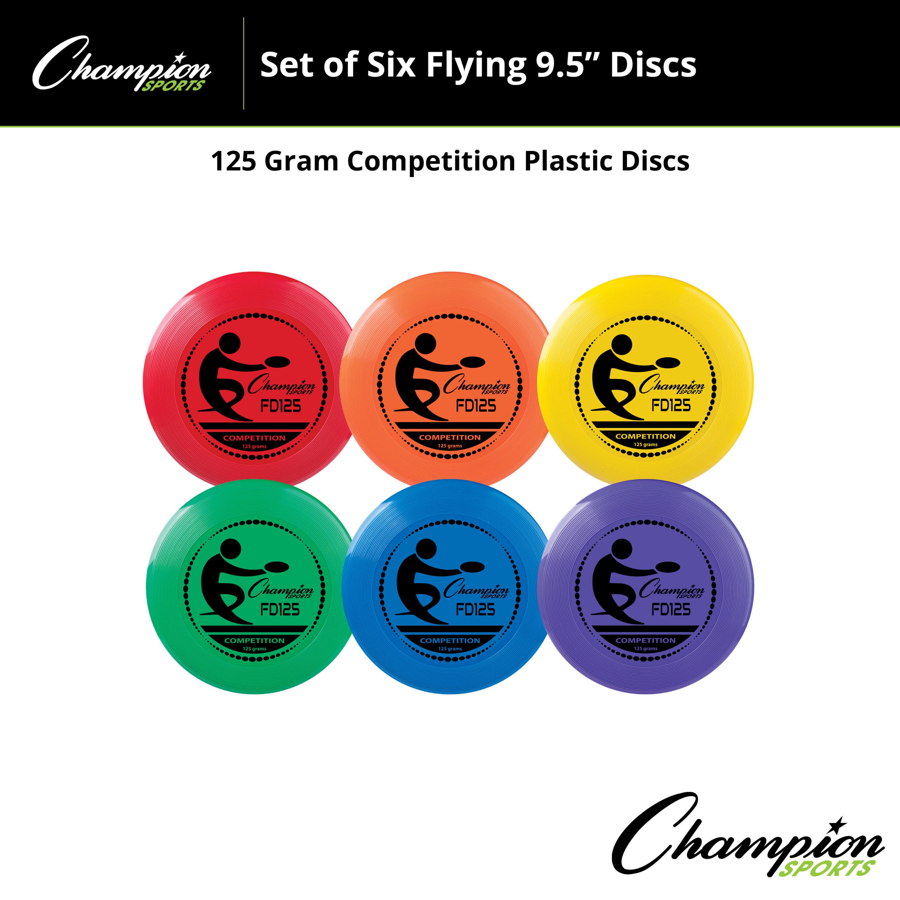 Champion Sports Competition Plastic Discs, 125 Grams, Assorted Colors, Set of 6