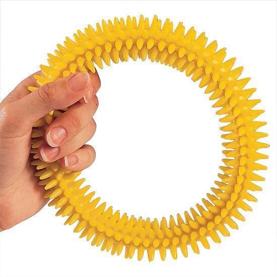 This 7-inch (18 centimeter) large, comfortable-grip toss ring is covered with long, flexible nubs for easier grasping.Includes: