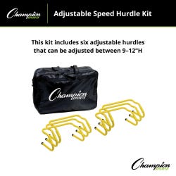 The Adjustable Hurdle Kit from Champion Sports is a versatile training tool for athletes of all ages and disciplines. This kit includes six hurdles that can be adjusted from 9 to 12 inches high by rotating the base of the hurdles. Plus, they fold up for easy storage and come in a convenient carrying bag.Features