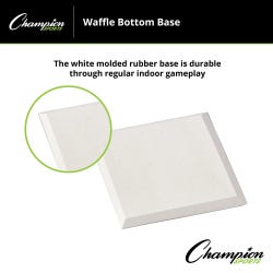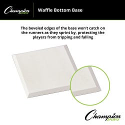 The Champion Sports Waffle Bottom Base is made of heavy-duty and durable rubber for playing baseball or softball at a moment's notice. Beveled edges protect the runners, while the waffle bottom creates suction with gym floors to hold the base securely in place. Ideal for indoor use, this base is made of heavy-duty molded rubbber. The base measures 14 x 14 x 1 inches. Each base is sold individually.Features