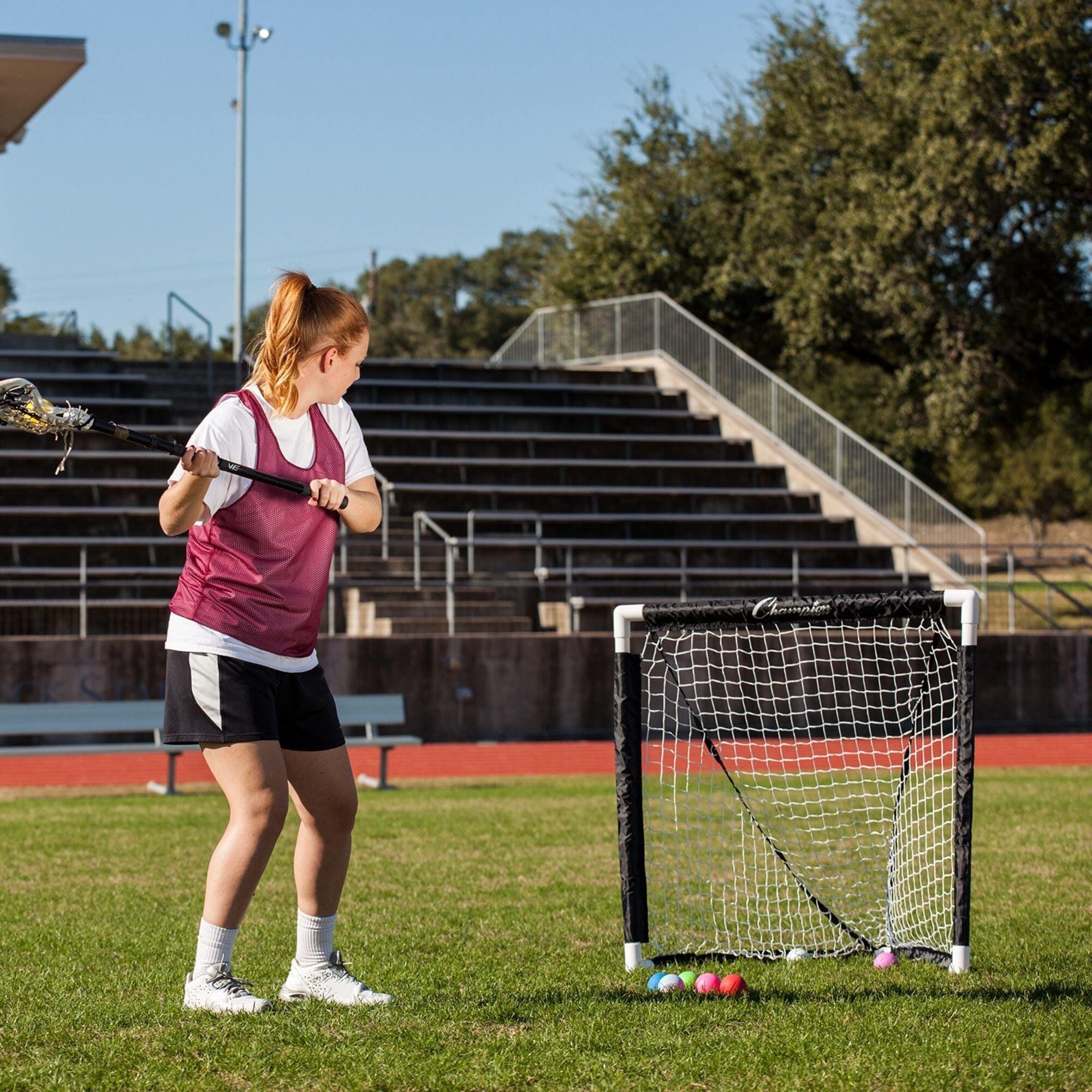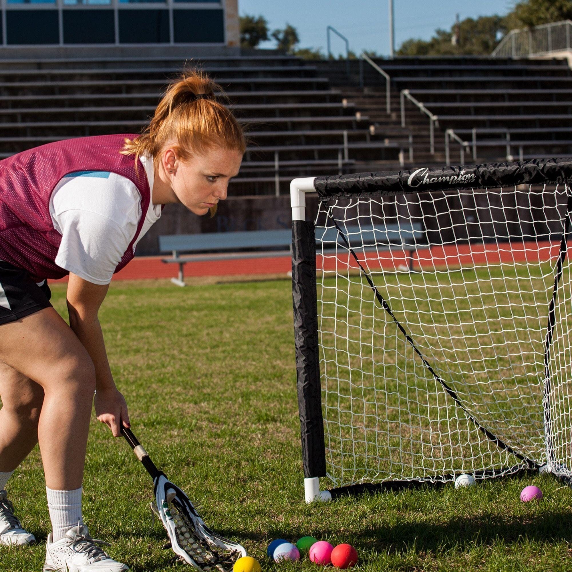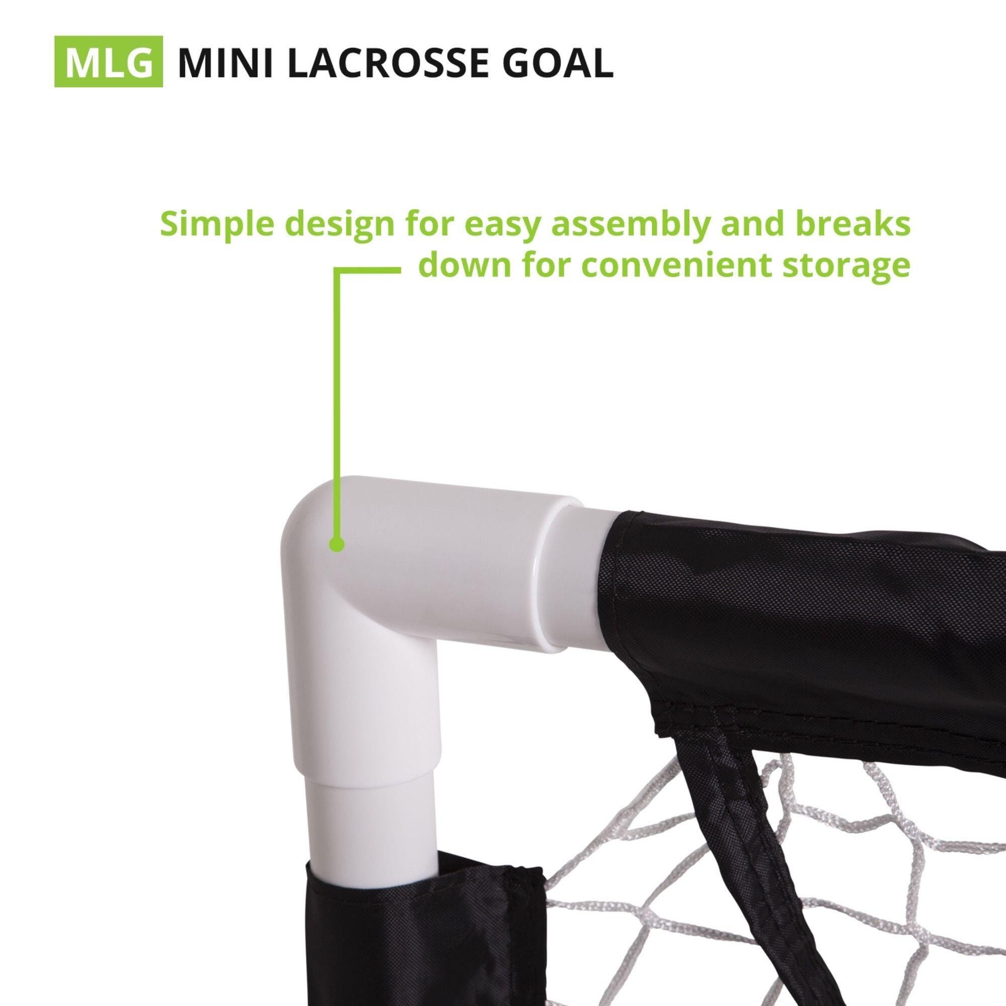 Practice anytime, anywhere with the Champion Sports Mini Lacrosse Goal. This 3 x 3 foot mini goal is easy to assemble and break down quickly for convenient storage. It's crafted from durable ABS and includes a durable polyester/cotton net with a 600 Denier nylon sleeve. The bottom is weighted for extra stability.