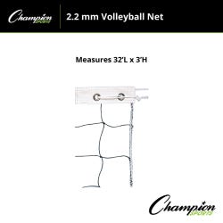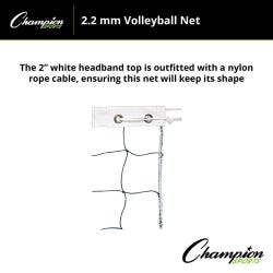 This Champion Sports Volleyball Net offers long-lasting use and quality materials to withstand powerful shots. The net measures 32 L x 3 H feet, with 2.2mm twisted polyethylene netting in 4-inch squares, a 2-inch taped headband, and a nylon rope cable that ensures the net maintains its shape.Features