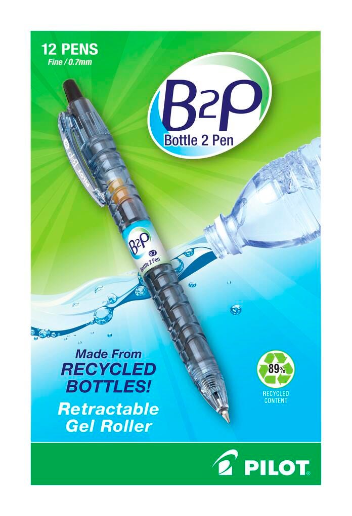 Pilot B2P BeGreen Refillable Retractable Gel Pen Fine Tip, Black Ink, Pack of 12