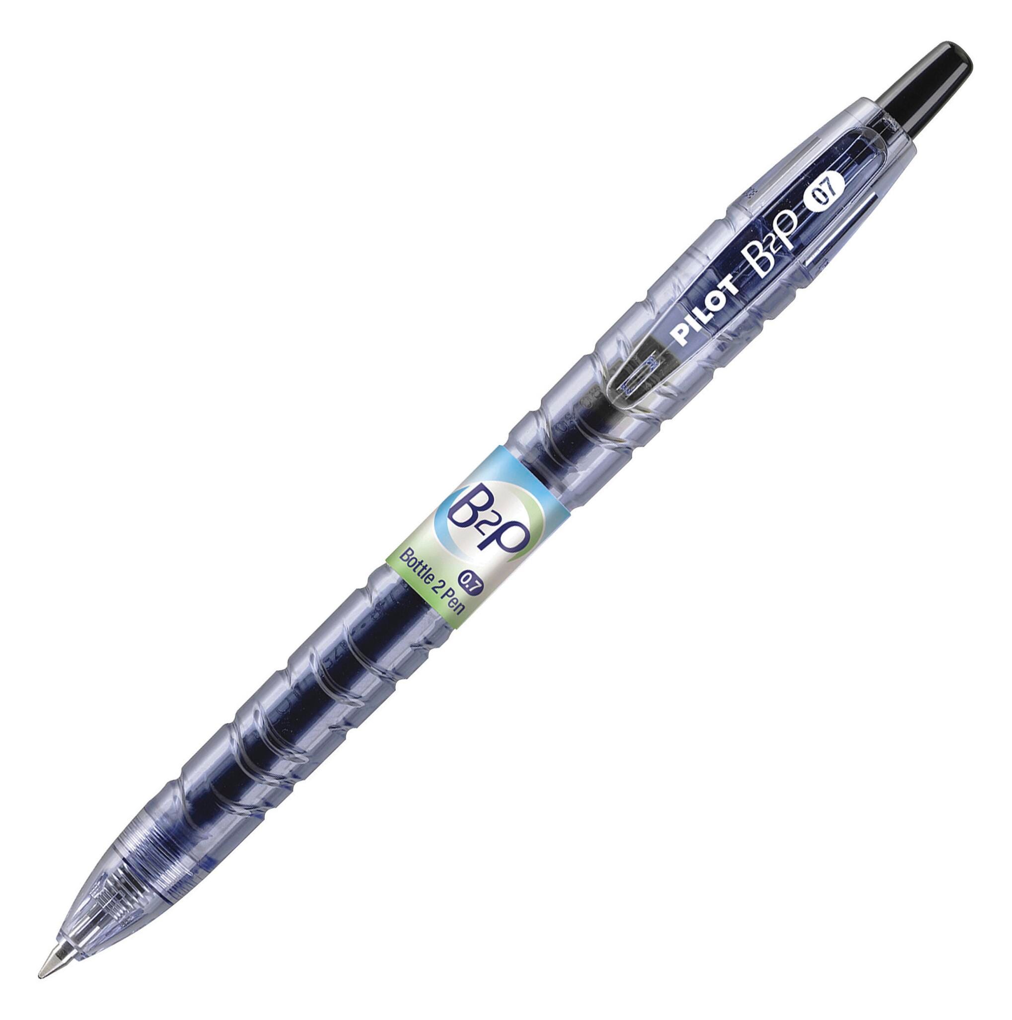 Pilot B2P BeGreen Retractable Gel Pen made of recycled plastic bottles features vibrant gel ink that delivers smooth and effortless writing. Black ink gel pen has fine point and can be refilled by G2 refills.