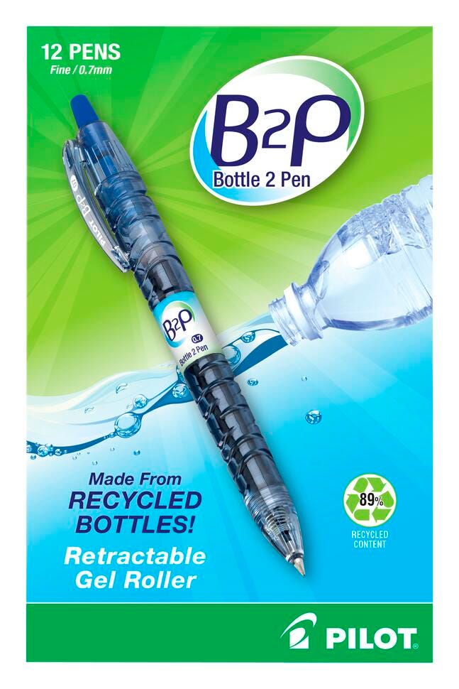 Pilot B2P BeGreen Refillable Retractable Gel Pen Fine Tip, Blue Ink, Pack of 12