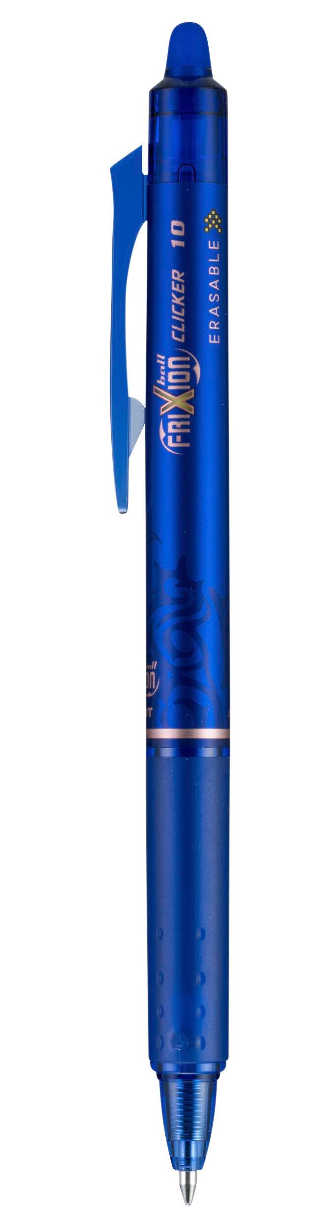 Never write a mistake again . . . guaranteed! Pilot FriXion Clicker is America’s first retractable, erasable gel ink pen that allows you to write, erase, and rewrite repeatedly without damaging documents. FriXion’s unique thermo-sensitive ink is formulated to deliver both vibrant color and smooth writing. Pilot's FriXion Clicker is refillable and comes with a retractable clip and comfortable grip. Great for editing, lists, scheduling and so much more, Pilot FriXion pens make writing stress-free and mistake-free. This 12-pack of pens all feature blue ink and bold 1.0 mm tips.Features