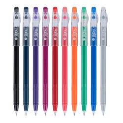 Write Fearlessly! FriXion erasable pens write smoothly and erase cleanly without any wear and tear to the paper or messy eraser crumbs. FriXion offers you unlimited do-overs so you can write, erase, and re-write until you get it right. ColorSticks deliver vivid, smooth writing in 10 vibrant ink colors. Make written mistakes a thing of the past with your favorite FriXion. Now only you will know that it wasn't perfect the first time!Features