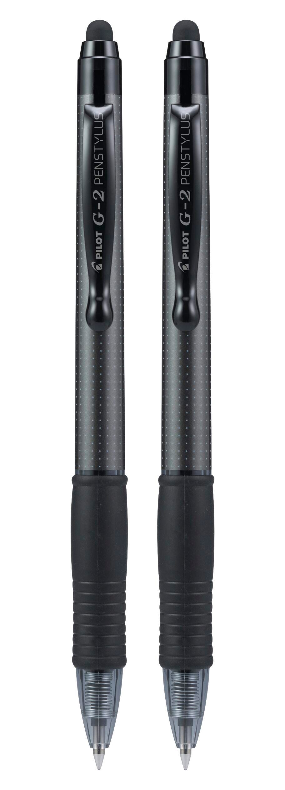 Pilot G2 PenStylus Retractable Gel Ink Pen & Stylus, Fine Point, Black Ink, Grey Barrel, Pack of 2