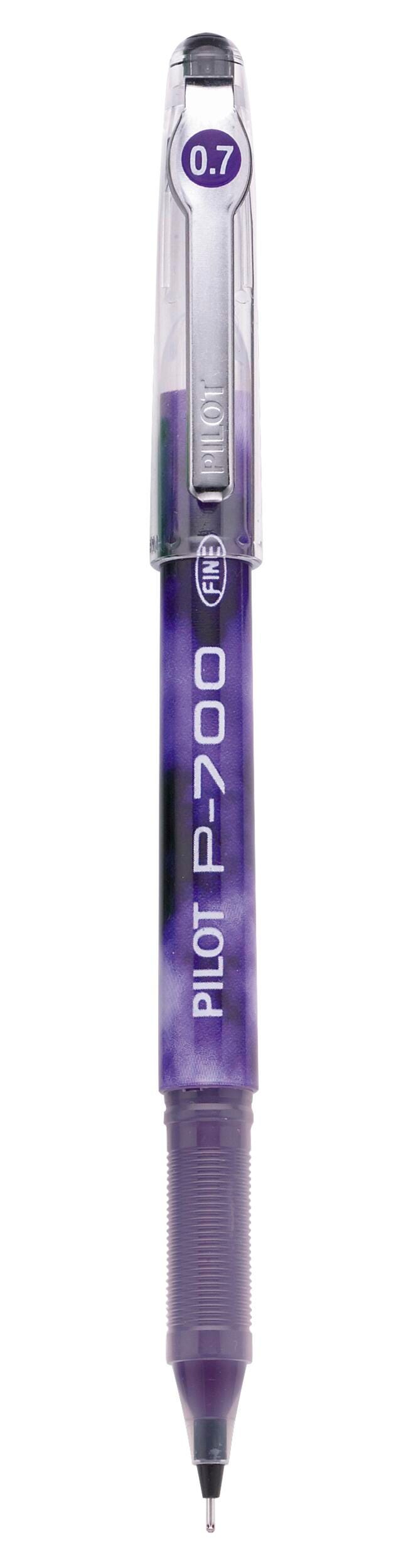 Enjoy total control and unique styling with Pilot P700 Gel Roller Pens, which have a distinctive, two-tone barrel design, ribbed grip, and precise point fit for any writing task. Each pen delivers smooth writing with waterproof, acid-free, and smear-proof gel ink. Ink color matches barrel and cap accents. Non-refillable pens also feature a fine 0.7 mm point. Also available in P-500 (0.5 mm tip) Precise Gel option, sold separately. This pack of pens all have purple ink.Features