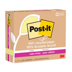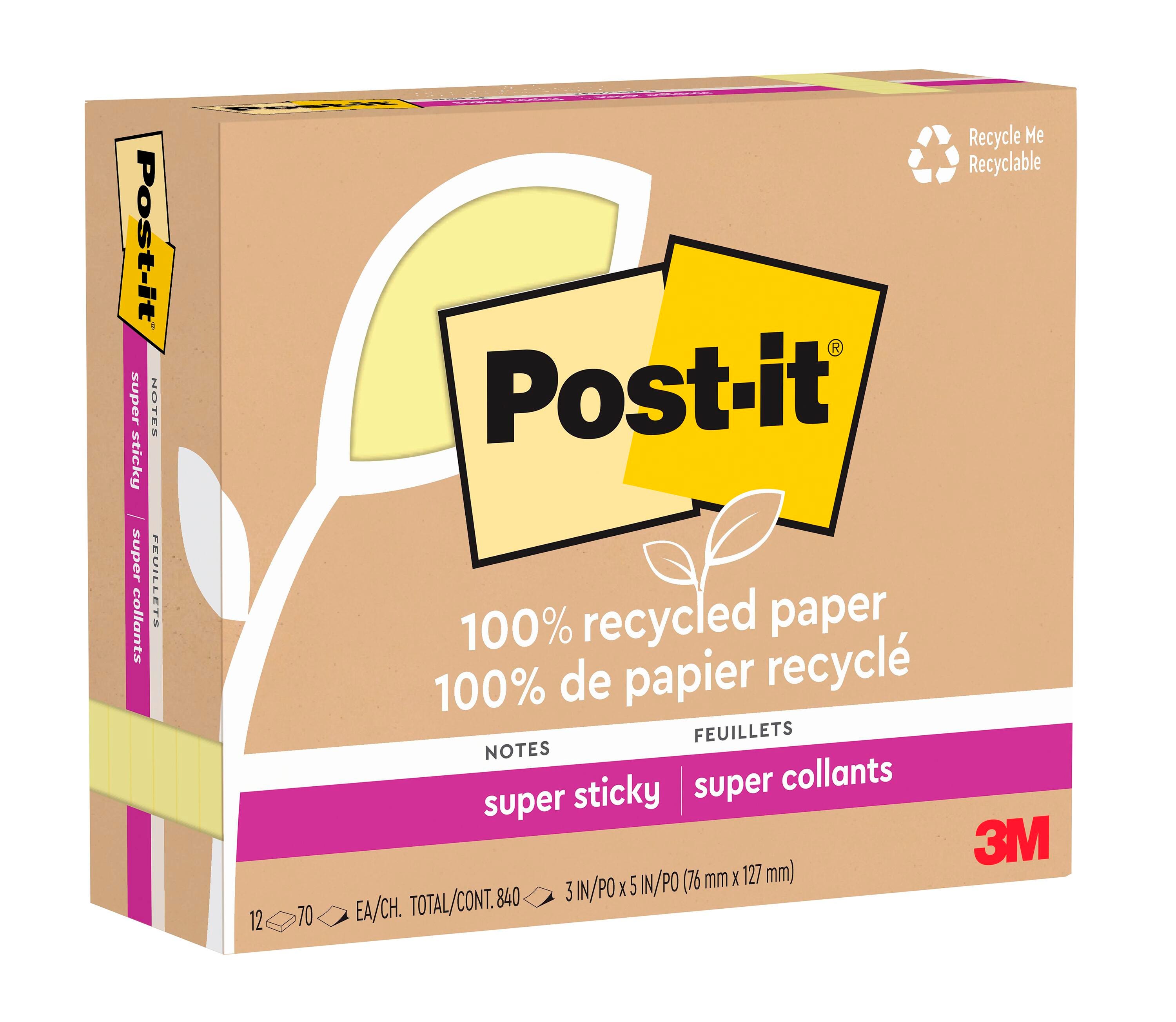Post-it® 100% Recycled Super Sticky Line Notes, Canary, 4x6 in, 4 Pack, 45 Sheets per Pad