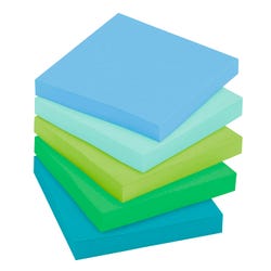 This large pack delivers Post-it® Super Sticky Notes made from 100% recycled paper with twice the sticking power to keep your notes right where you need them. These sticky notes are perfect for jotting down quick lists, messages, reminders, or tasks to keep you organized. Each note boasts a reliable water-based adhesive that firmly sticks and re-sticks to doors, windows, and walls, so your most important notes can move with you throughout your day. The soothing blues and greens of the Oasis Collection provide a calming touch, even on the busiest of days. This pack contains 12 pads, with 70 sheets in each pad.Features