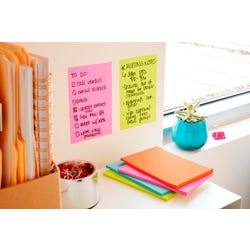 Post-it Super Sticky Lined Notes are perfect for to do lists and longer reminders. Post-it Super Sticky Notes have a unique adhesive technology to stick again and again and let you put your note where it'll get noticed like file cabinets, doors and walls. They bring peace of mind with better organization. A World of Color Miami Collection inspired by the Vivid colors that capture the exuberant soul of this urban paradise. All Post-it Notes are recyclable.Features