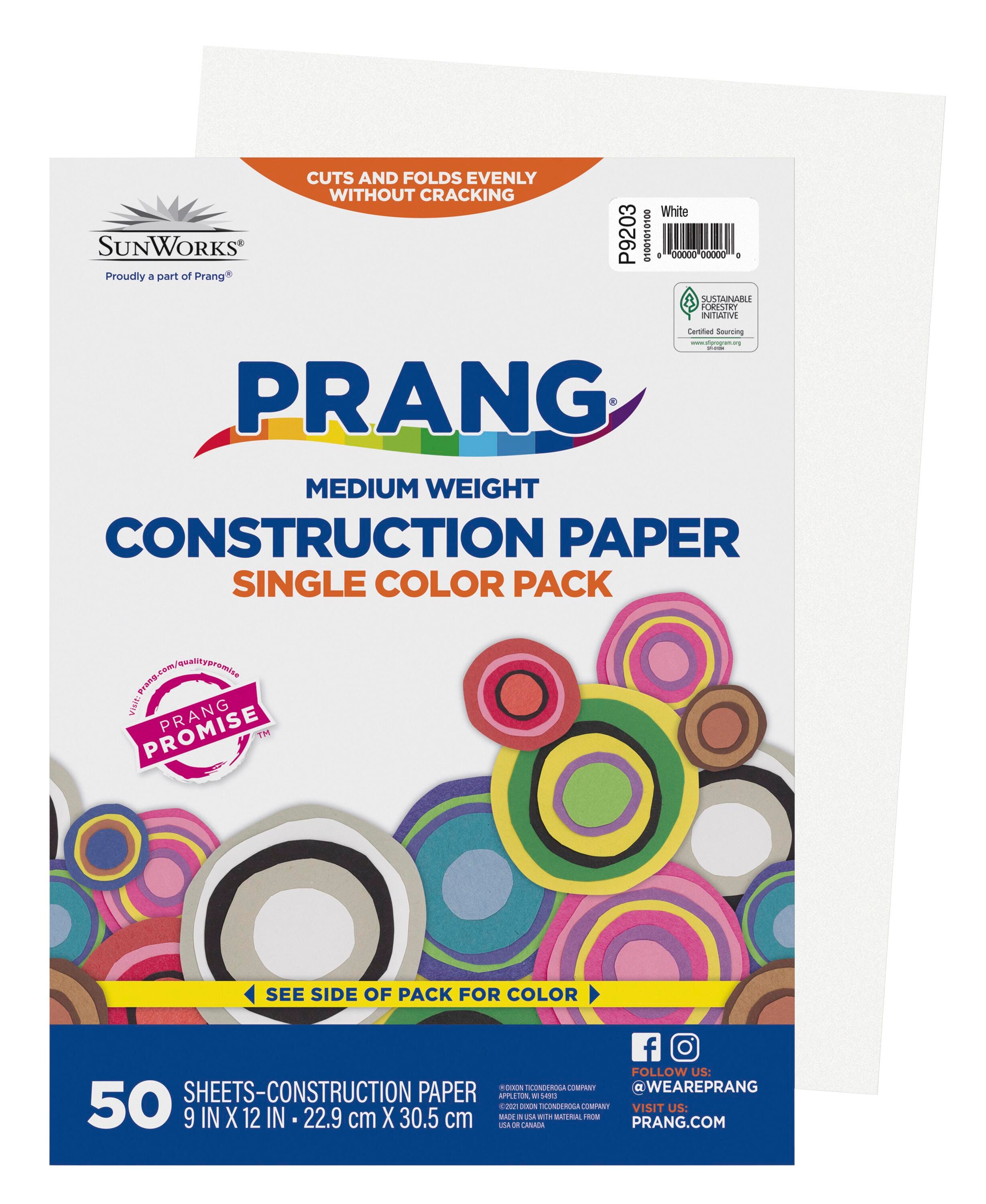 The best value in school grade construction paper, Prang Medium Weight Construction Paper has your classroom and arts and crafts projects covered. Each sheet of 50 lb. groundwood paper has a bright and consistent color, a smooth texture, and the ability to be cut and folded evenly without cracking. Use this value pack all year long for scrapbooking and handcrafted cards to making 3-dimensional figures and shapes, paper links, paper mosaics, and other kid-friendly creations.Features