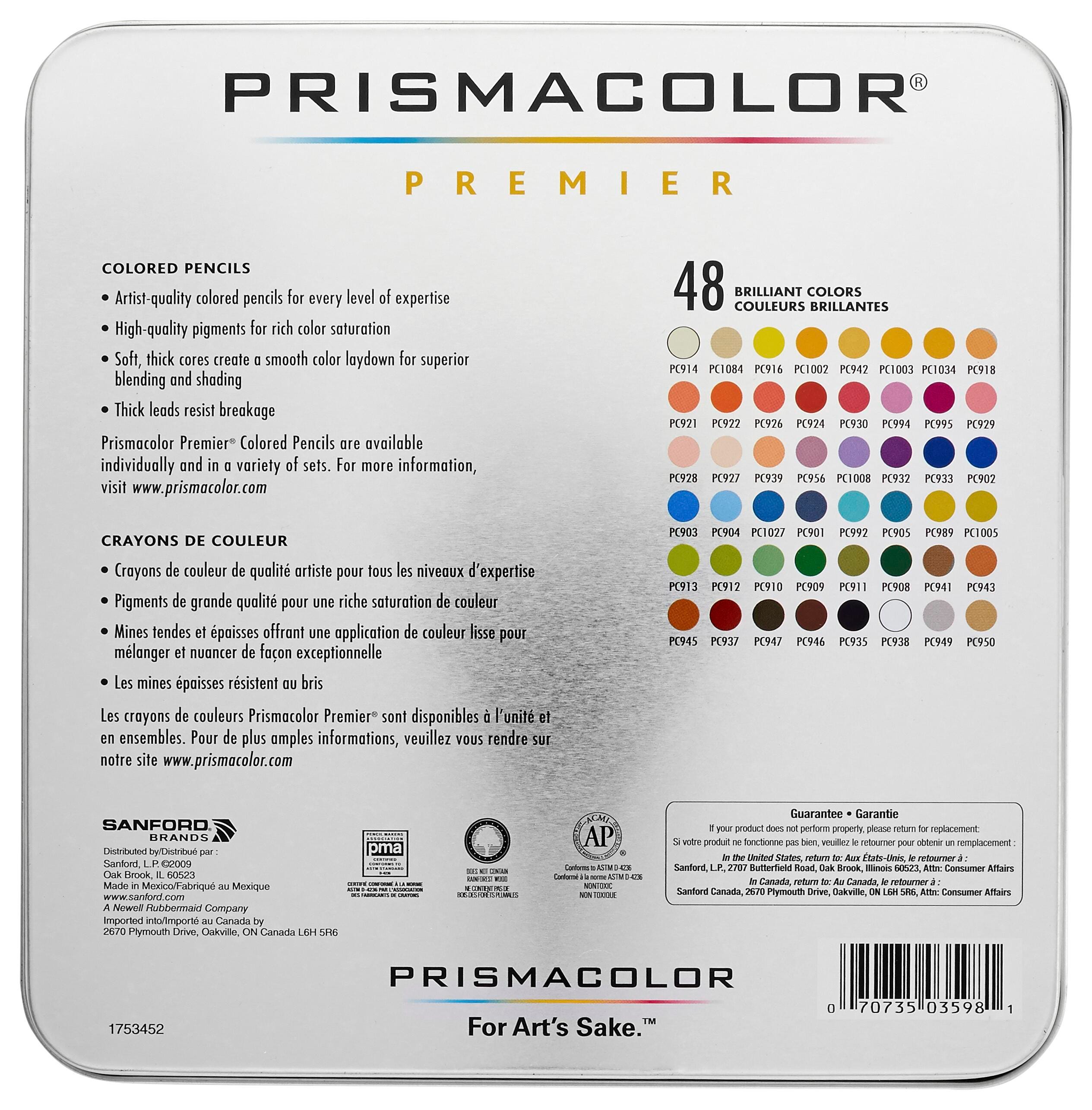 Description Premier colored pencils produce brilliant colors, with smooth, soft leads that are extra-thick and slow-wearing. Non-toxic.Features Soft colored pencil cores are ideal for blending High quality pigments are rich in color saturation Thick cores resist breakage Colors are all light-resistant and waterproof Includes: Set of 48 Colored Pencils in Durable Storage Tin