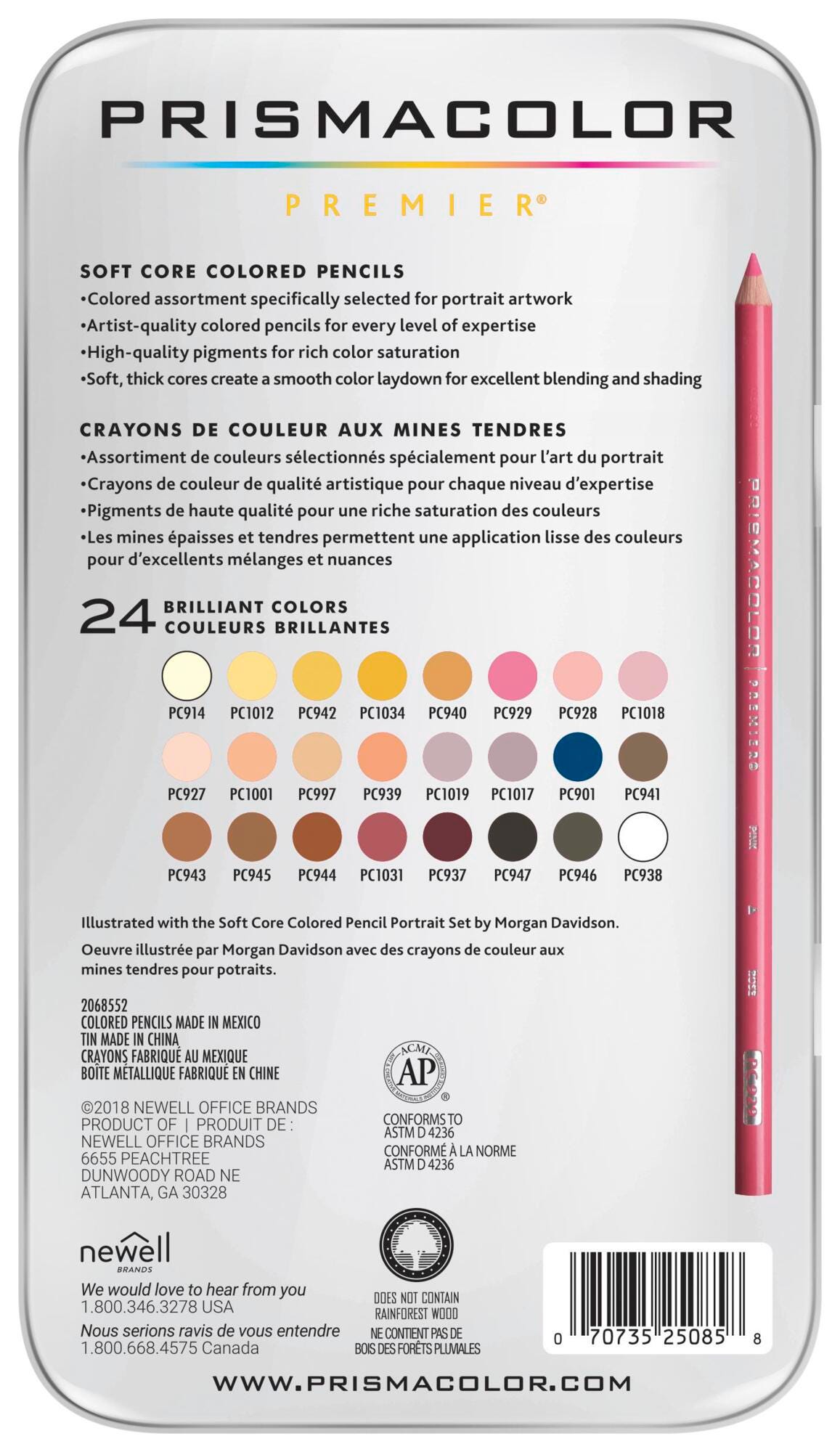 This set of Premier® Soft Core Colored Pencils from Prismacolor are specially designed to bring portraits to life in striking color and detail. The pencils boast smooth, soft leads that produce brilliant colors for blending, shading, and layering. The extra-thick leads wear slowly and can be sharpened to a precise point. This artist-quality pencil features premium pigment for hard lines and soft shading. This set contains 24 pencils in an assortment of portrait colors.