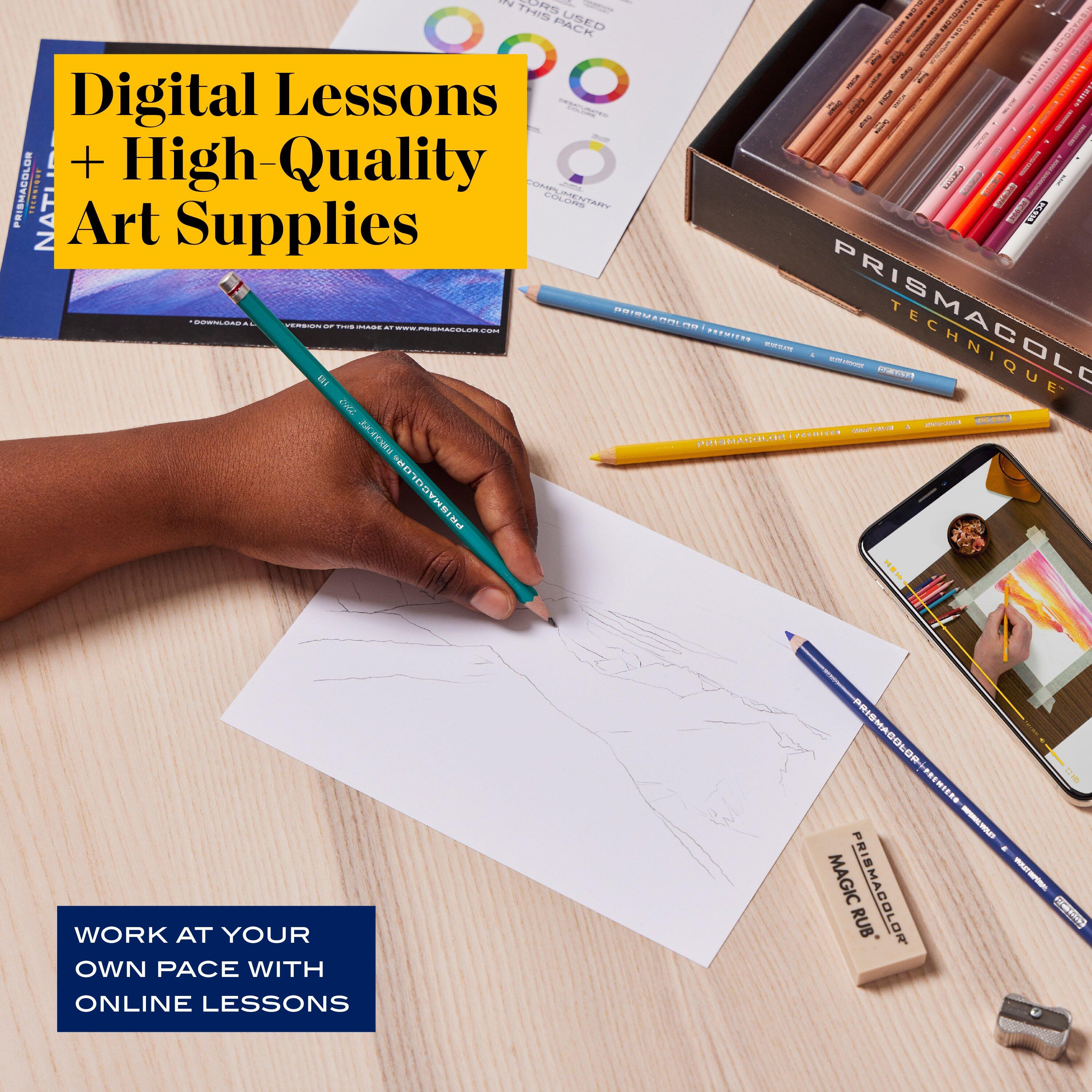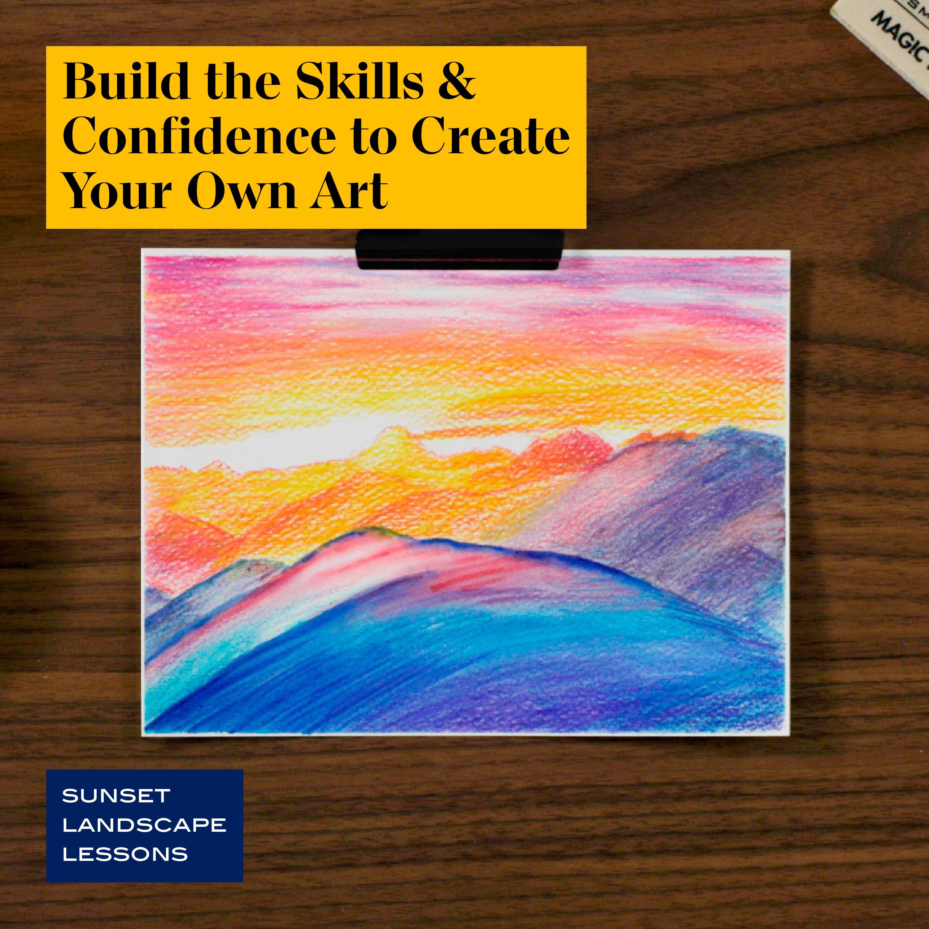 The Level 2 Nature Drawing Set is designed for those who want to keep building on their art knowledge. You'll practice color usage and style while creating a stunning sunset landscape. A set of instructions as well as, hours of online content to learn at your convenience!
