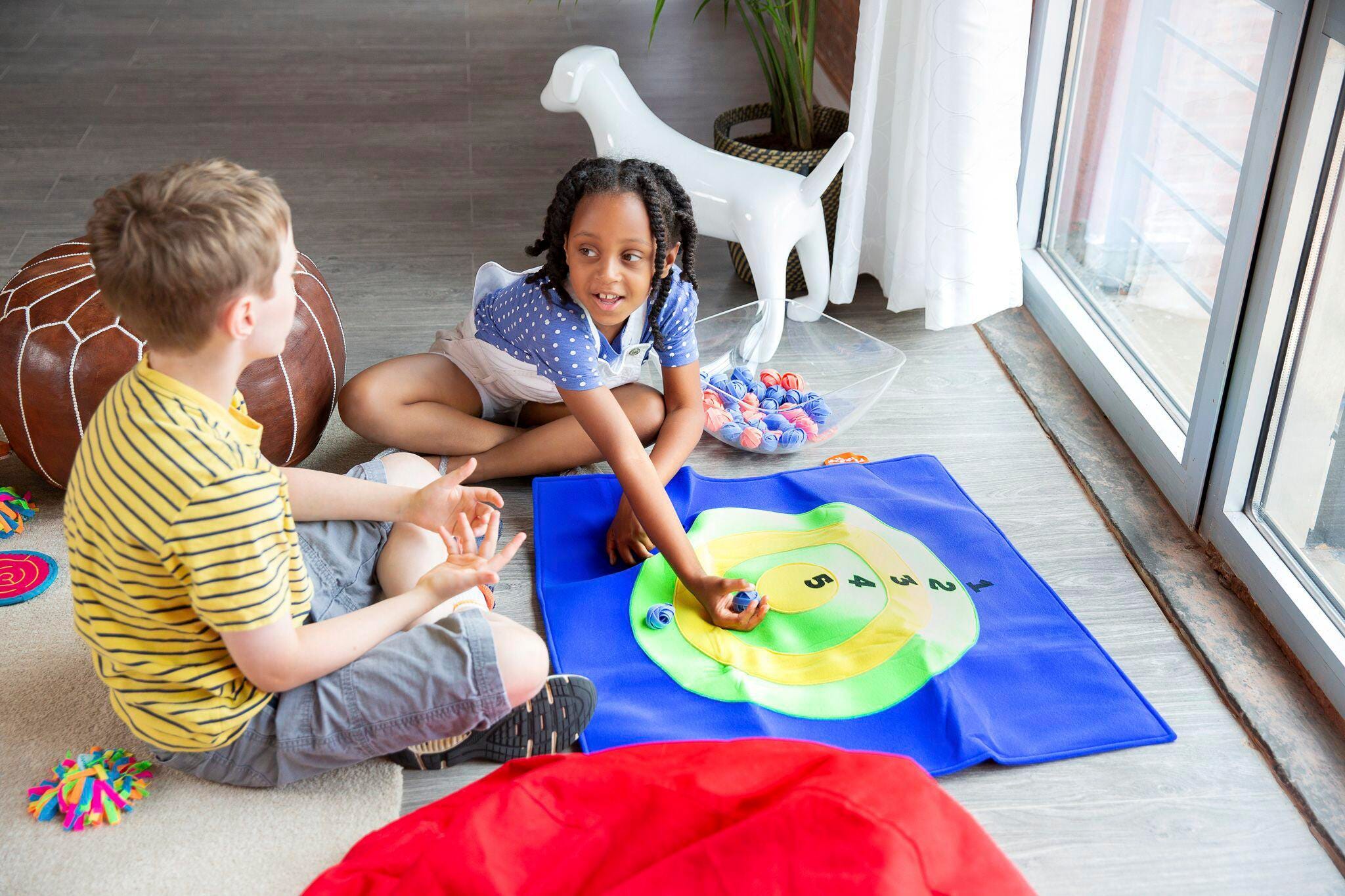 The new PunkinPlaySpace is a multi-purpose therapeutic tool that offers endless activity opportunities. Made of super-soft, high-quality loop, one side features a brightly colored target to encourage hand eye coordination, motor/muscle planning, turn-taking and counting skills, while the other is an open play field. Both sides can be used hanging on a wall or flat on the floor. Free curriculum available electronically.