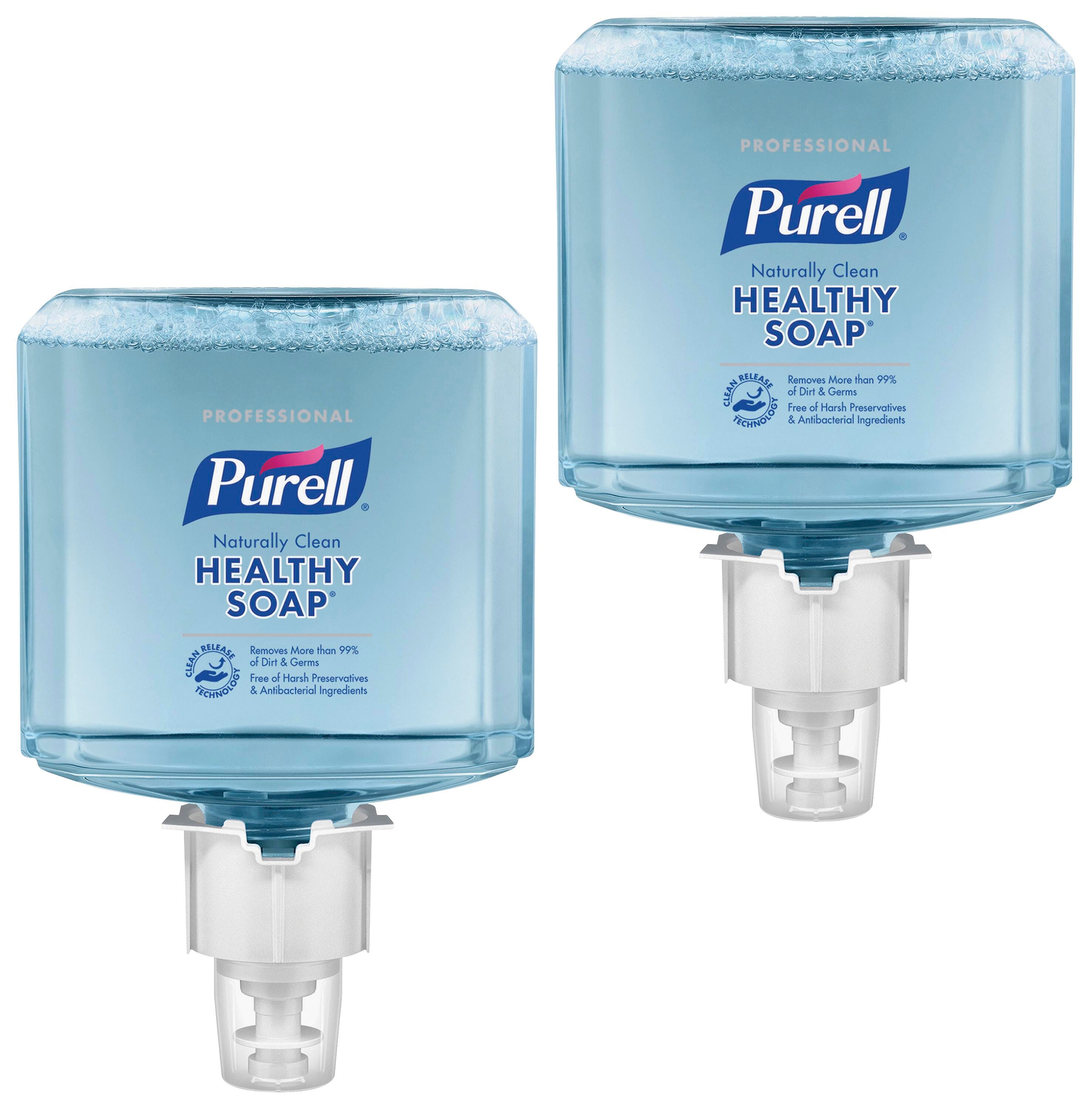 Designed for your Purell ES4 Push-Style Soap Dispenser, remarkably mild formulation removes more than 99 percent of dirt and germs without antibacterial ingredients or harsh preservatives. CLEAN RELEASE Technology reaches into skin's cracks and crevices two times better than regular soap to remove dirt and germs. For a better wash experience, it removes 30 percent more dirt than regular soap and rinses fast and clean, saving an estimated 6 gallons of water per refill compared to regular soap. Foam hand soap is free of harsh preservatives, antibacterials, parabens, phthalates and dye. It is fragranced naturally with essential oils. Hypoallergenic formula is gentle on skin and approved for all skin types. Purell Professional HEALTHY SOAP Naturally Clean Foam meets USDA certified biobased standard (made with 90 percent biobased content) and UL EcoLogo Hand Cleaner Standard UL 2784. AT-A-GLANCE refill design lets you monitor soap levels with just one look.