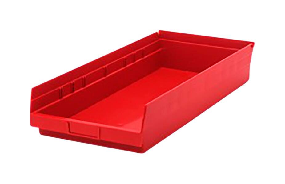 Economy, long lasting, unbreakable, 4-inch high storage bins are made of tough, high-density polypropylene with reinforced edges for strength. A built-in rear hanglock convenently allows bins to tilt out for complete access when on shelving. Plus, the contents of the bin can be easily accessed from the open wide hopper These binins are designed to be used for 12, 18, and 24 inch deep shelf units, racks, or standard shelving.Features