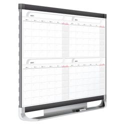 Quartet Prestige Total Erase 4-Month Calendar finds use in personal or group environments. It has total erase surface that offers protection against dust, stain and scratches by allowing new quarters to begin. It provides four undated months for effective planning. It helps in displaying significant deadlines in the ample space provided including date description field. Calendar has ruled daily blocks on each page. Calendar with its easy mount system ensures accurate and simple installation. It has contemporary designed frame with modern graphics that adds warmth addition to any decor. It comes with dry-erase marker and marker tray for added convenience. 4 ft x 3 ft. Graphite Finish.Includes: