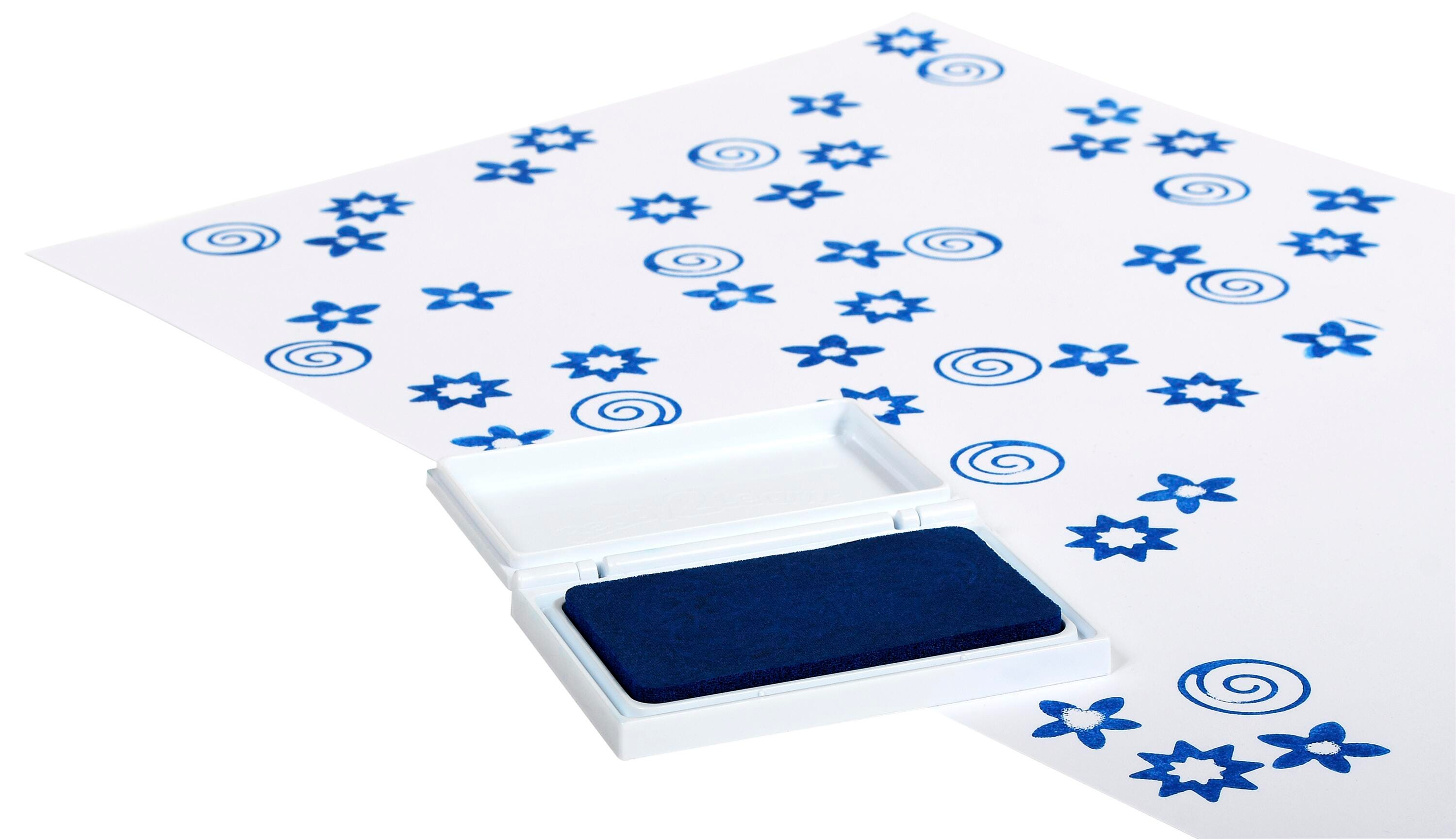 An open-ended tool to decorate scrapbooks, notebooks, cards, and beyond (all while increasing fine motor skills, hand-eye coordination, and creativity), the Ready2Learn Washable Stamp Pad is a fun and functional addition to any arts and crafts collection. Blue ink pad provides crisp and boldly colored impressions when stamped (stamps sold separately) and ink is both fade-resistant and acid-free for like-new archival quality. Ink pad is encased in plastic with a flip cover to prevent ink from drying out. Size of entire stamp pad (with plastic casing): 3-7/8 L x 2-3/4 W x 5/8 H inches; size of ink pad: 3-3/8 L x 2 W inches. Ages 3 and up.Features