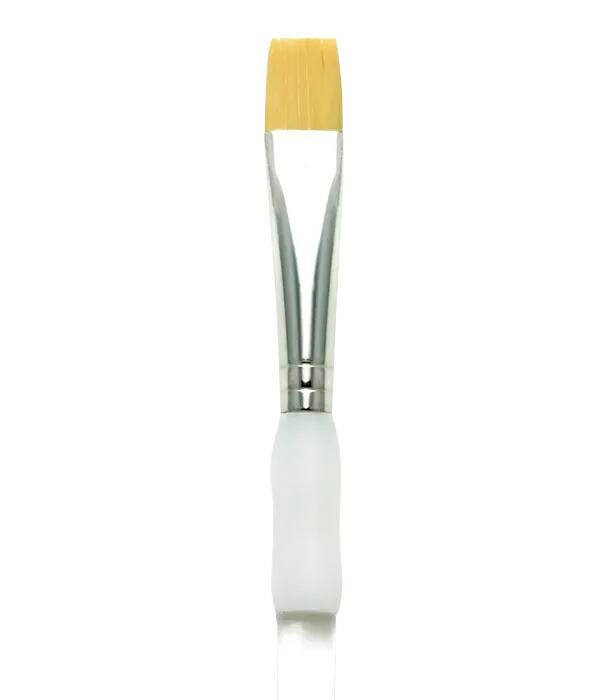 Royal Brush Soft Grip Size 12 Flat Paint Brush is ideal for a number of paint types including acrylics, watercolor and tempera. It features a thick acrylic handle with a soft rubber grip which prevents it from slipping thus offering good comfort and control. The durable golden taklon fibers have smooth ferrules and the brush is sold as 12 per pack.