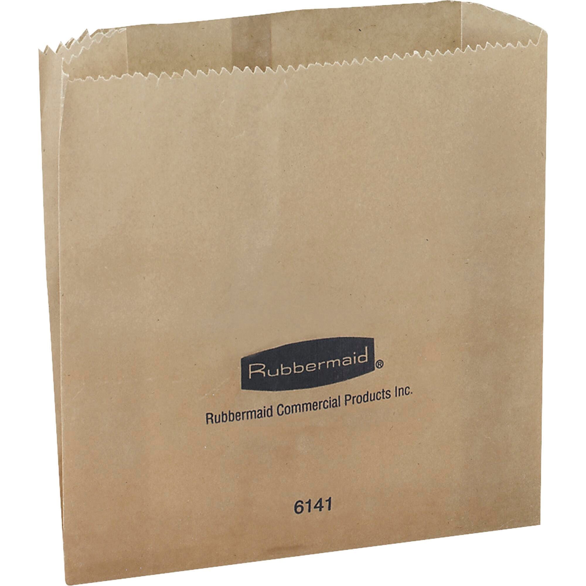 Rubbermaid Commercial Waxed Receptacle Bag specially designed to fit snugly into sanitary receptacle features clay-coated kraft paper construction with durable wax coating. Latex free bag in a narrow design that tappers towards the bottom is sold as 250 per pack.