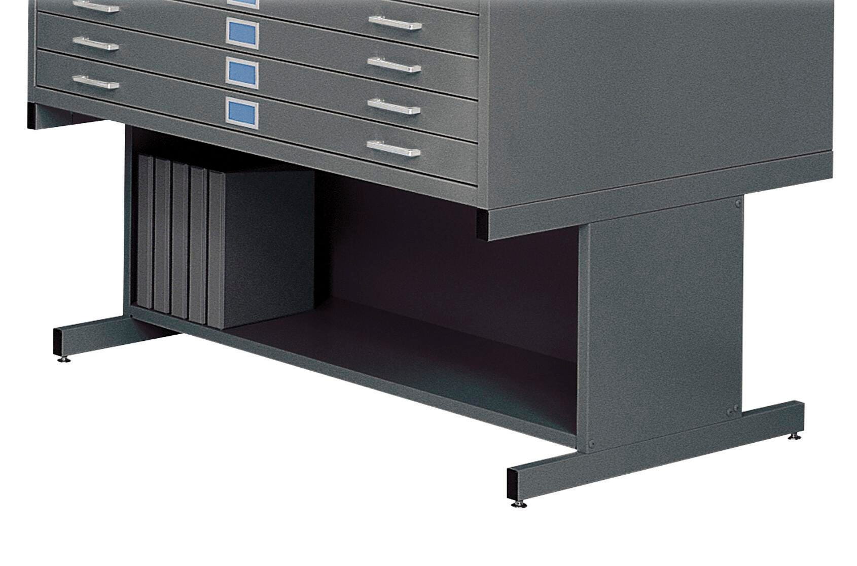 High base unit raises 5-Drawer Steel Flat File Cabinets 20 inches off the floor.