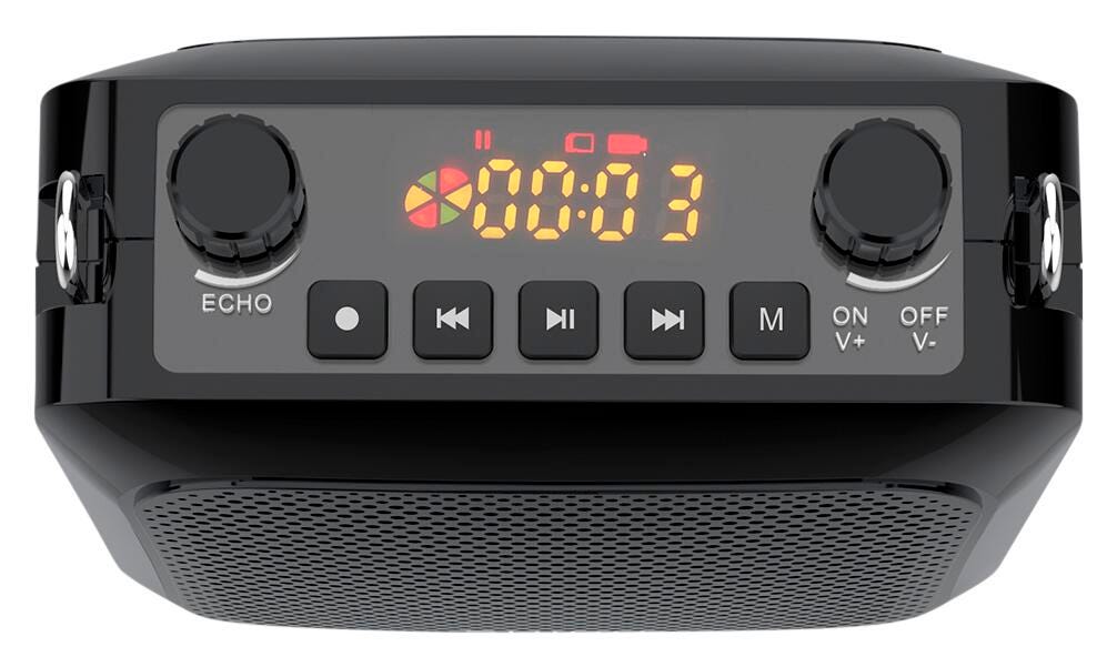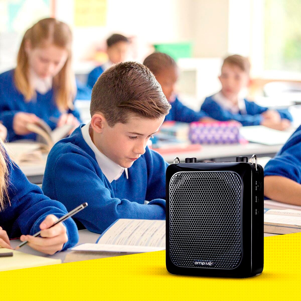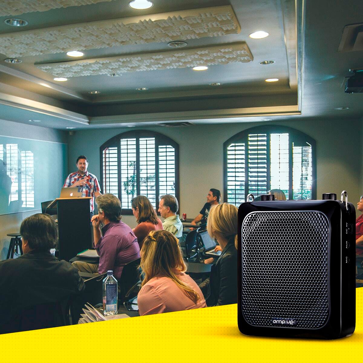 The PA-25W Amp-Up! Amplifier is a winner. It offers a wireless headworn microphone that has an output to cover large areas. It's lightweight, has a long battery life and you can record your voice while using the amplifier anytime too! It's Bluetooth feature can have you streaming audio and music and you can play content using it's USB/TF card or AUX-IN as well. The wireless microphone, carrying strap and waistband hook makes it great for hands-free use.