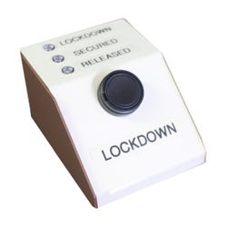 Push for LOCKDOWN to Deactivate. LED SIGNALS indicate normal: White, LOCKDOWN: Red, and Classroom Mode: Green