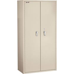 The FireKing Storage Cabinet measuring 36 W x 19-1/4 D x 72 H inches is equipped with a High Security Medeco Key Lock, ensuring resistance to picking and drilling. 1 Fixed Shelf and 4 Adjustable shelves. The Parchment powder coat finish is scratch-resistant, providing a lifetime quality appearance. Carries the 1 hour UL fire rating.Features
