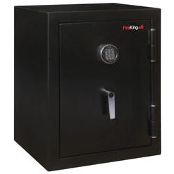 Fire King Fire and Water Resistant Safe is constructed by heavy steel uses no plastic. Features continuous 1/2 hrs fire rating and programmable electronic lock and is carpeted with 2 adjustable shelves for users comfort.