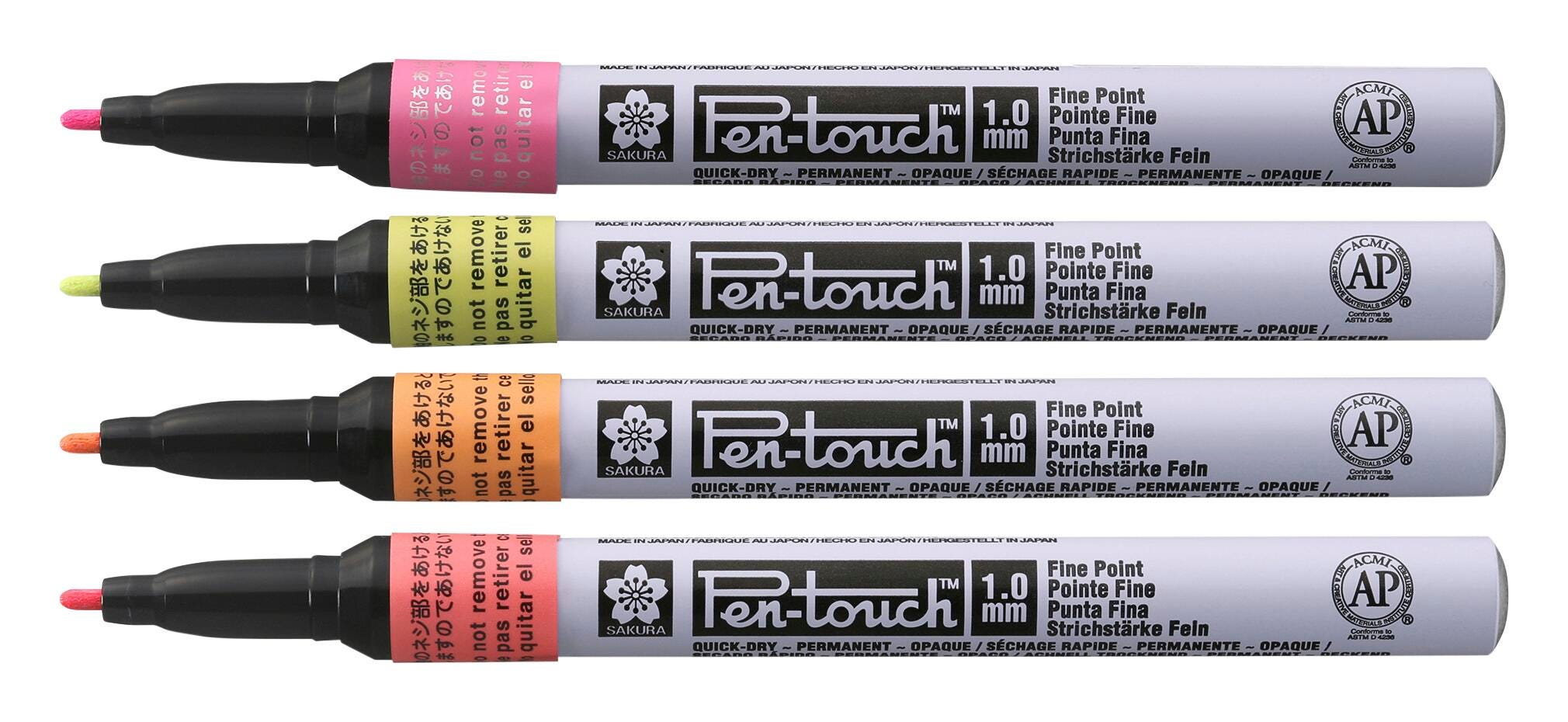 Sakura Pentouch Paint Markers, Fine Tip, Assorted Fluorescent Colors, Set of 4
