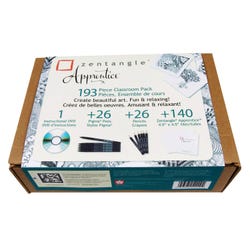 Sakura Zentangle Apprentice Classroom Set includes enough supplies for an instructor to use in a classroom of 24 students with 5 tangle sessions. Sold as a set of 193. Includes DVD with Follow-Along Teacher instructions.Features