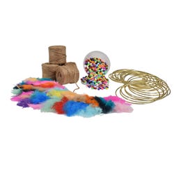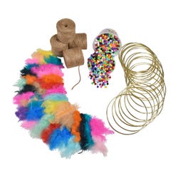 - Includes (24) hoops, 4 rolls of 3-Ply 216 ft. Jute Twine, 1/2 ounce of feather fluffs, and 1000 pony beads