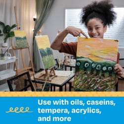 - Use with oils, caseins, tempera, acrylics, collage, and gouache