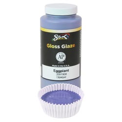 The Sax gloss glaze in opaque Eggplant Purple is a high-quality glazing paint that's non-toxic and dinnerware safe when fired to cone 06-05. During application, the glaze may be a different color and will change to the desired look after the required kiln firing. The color fades to a blue/purple when fired at cone 6.Features