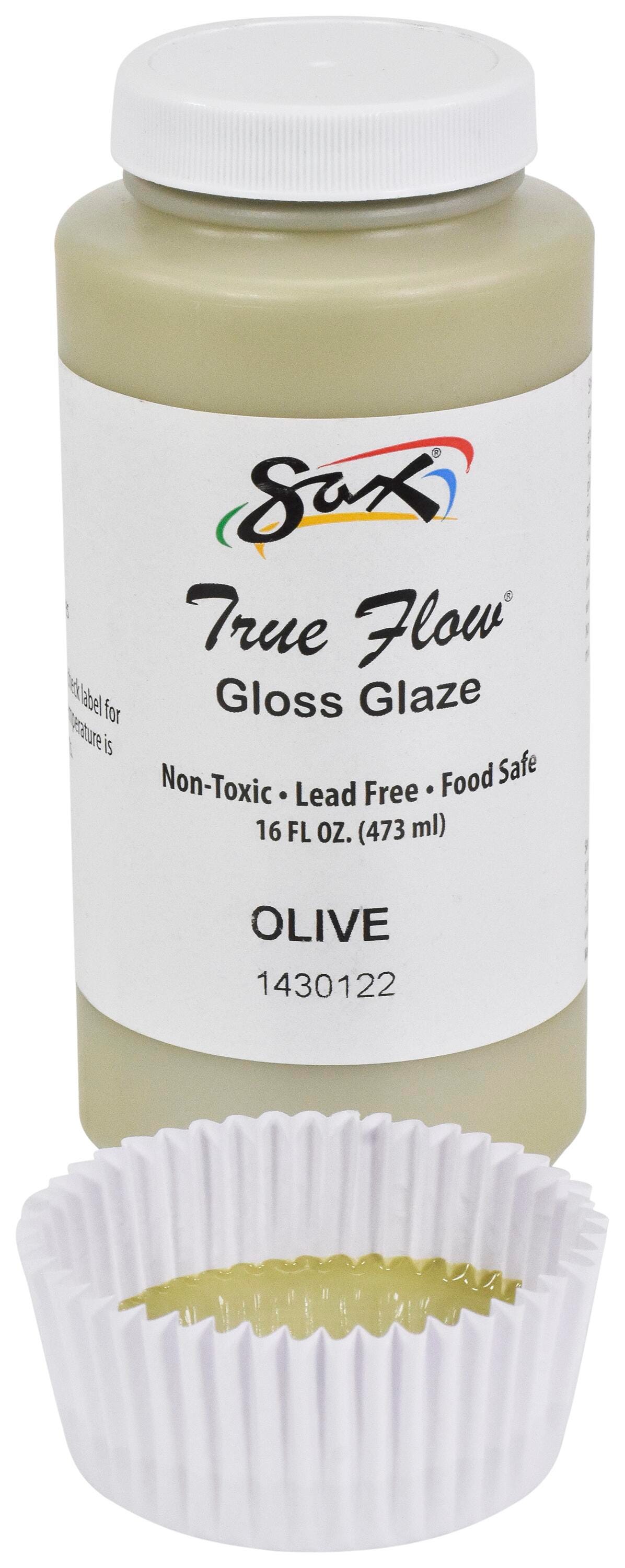 The Sax gloss glaze in opaque Olive is a high-quality glazing paint that's non-toxic and dinnerware safe when fired to cone 06-05. During application, the glaze may be a different color and will change to the desired look after the required kiln firing. The color slightly darkens when fired at cone 6.Features