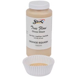 The Sax gloss glaze in opaque Orange Squash is a high-quality glazing paint that's non-toxic and dinnerware safe when fired to cone 06-05. During application, the glaze may be a different color and will change to the desired look after the required kiln firing. The color lightens when fired at cone 6.Features