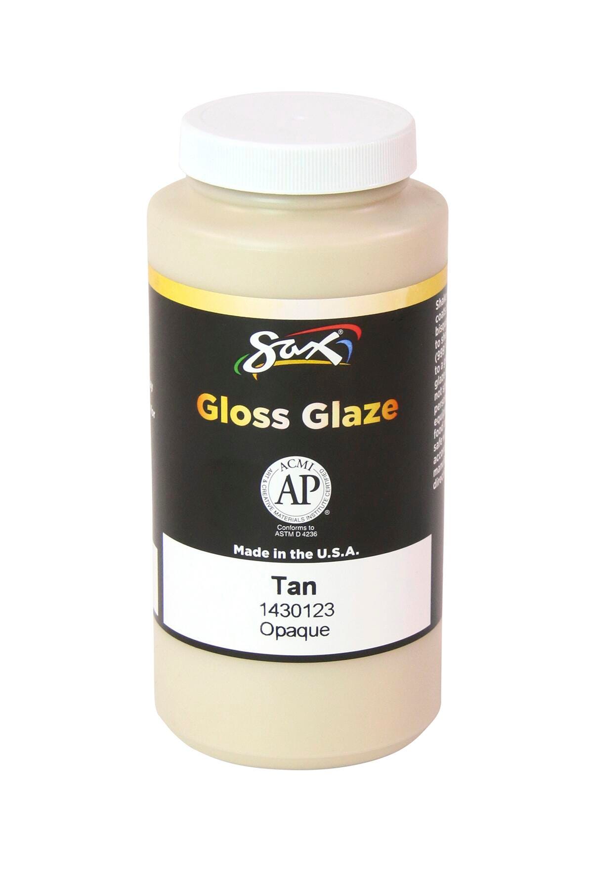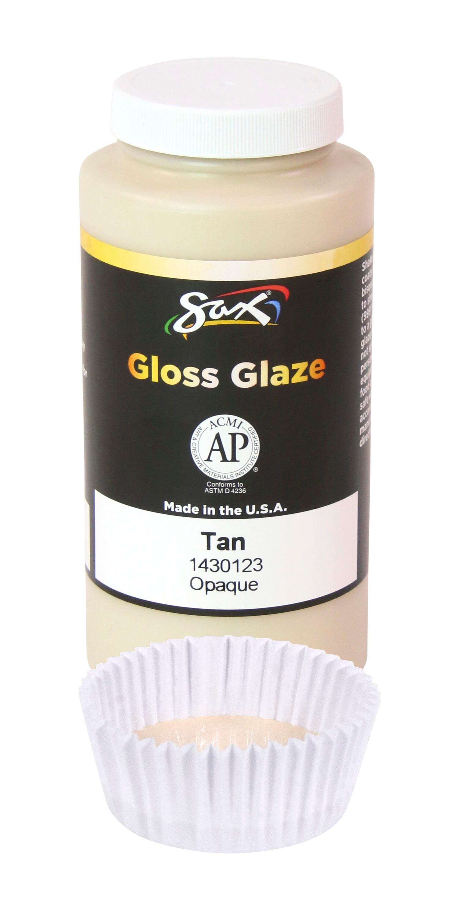 The Sax gloss glaze in opaque Tan is a high-quality glazing paint that's non-toxic and dinnerware safe when fired to cone 06-05. During application, the glaze may be a different color and will change to the desired look after the required kiln firing. The color slightly lightens when fired at cone 6.Features