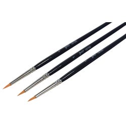 These Sax golden taklon watercolor paint brushes come in size 1. The synthetic brushes feature short handles for better comfort and control. Each lacquered hardwood handle has nickel-plated, seamless aluminum ferrules for long-lasting durability. Choose the responsive round brush design for all watercolor techniques and painting surfaces. Use the 3-pack in the classroom, art studio, or home.Features