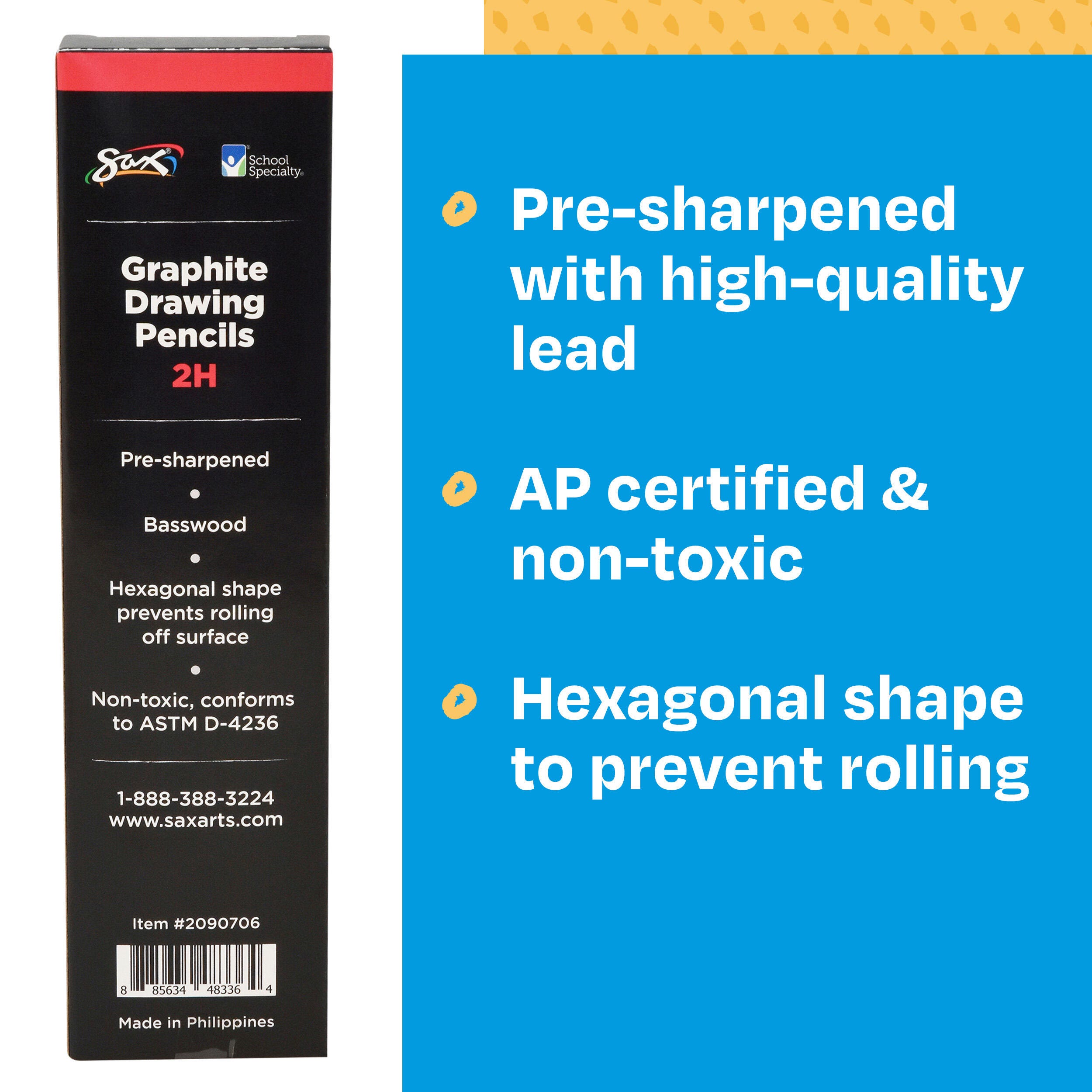 • Sax Graphite Drawing Pencil Pack, 2H Lead Hardness Degree, Set of 12