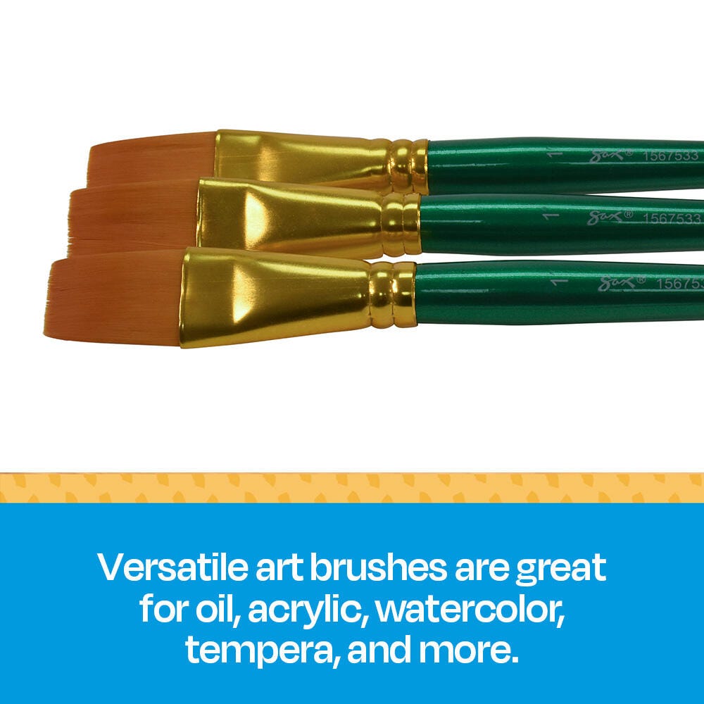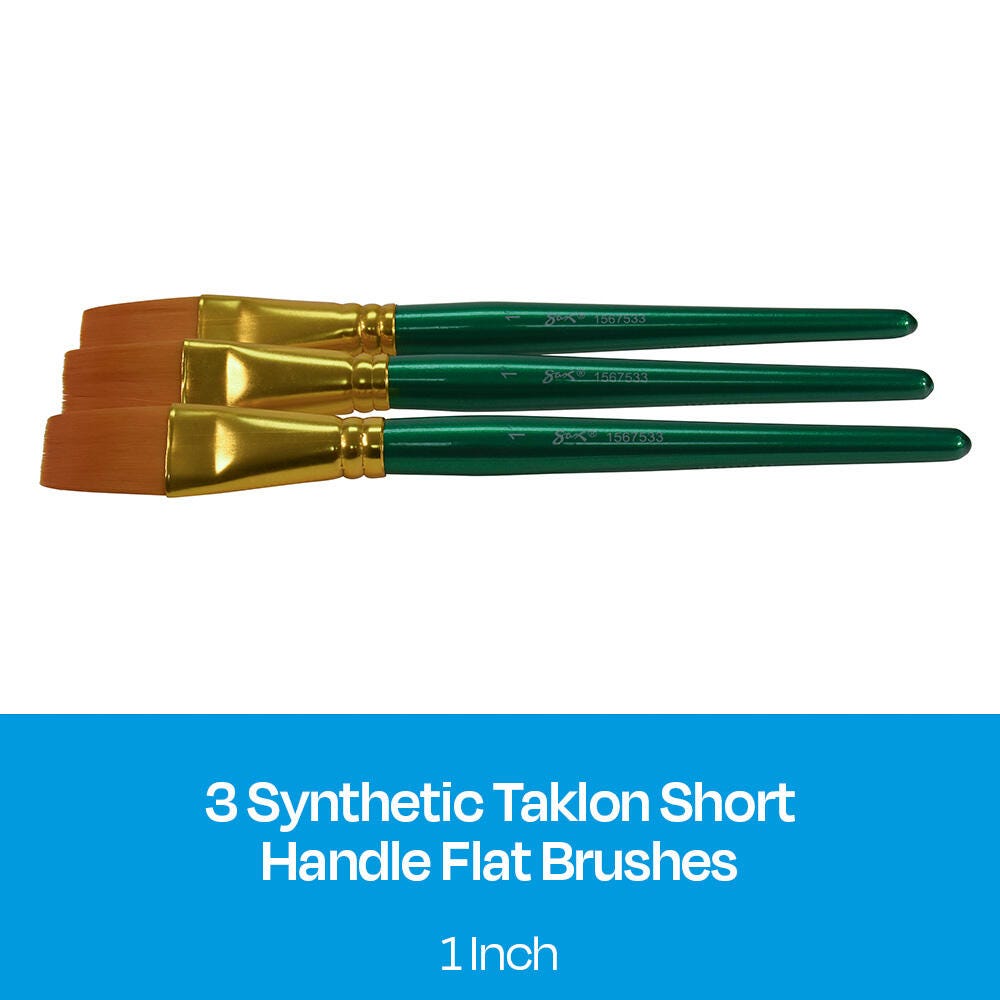 Sax Optimum Golden Synthetic Taklon Paint Brushes, Flat Type, Short Handle, 1 Inch, Set of 3