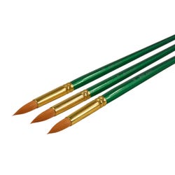 Sax golden taklon paint brushes with long handles and a round tip provide optimum snap and smooth application. Excellent brush strokes help students create their best projects while enhancing their painting techniques on different mediums. Our 3-pack of synthetic bristle brushes is perfect for all your crafting needs in the classroom or art studio. Use the size 12 brushes for fine detail and small spaces. Golden nylon synthetic hair brushes are great with different mediums, including oil, acrylic, and watercolors.Features