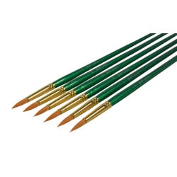 Sax golden taklon paint brushes with long handles and a round tip provide optimum snap and smooth application. Excellent brush strokes help students create their best projects while enhancing their painting techniques on different mediums. Our 6-pack of synthetic bristle brushes is perfect for all your crafting needs in the classroom or art studio. Use the size 8 brushes for fine detail and small spaces. Golden nylon synthetic hair brushes are great with different mediums, including oil, acrylic, and watercolors.Features