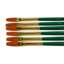 Sax golden taklon paint brushes with short handles and a flat tip provide superb color holding, spring, sharp edges, and smooth application. Optimal brush strokes help students create their best projects while enhancing their painting techniques on different mediums. Our 6-pack of synthetic bristle brushes is perfect for all your crafting needs in the classroom or art studio. Use the size 1/4 inch flat brushes for broad strokes or finer detail. Golden nylon synthetic hair brushes are great with different mediums, including oil, acrylic, and watercolors.Features